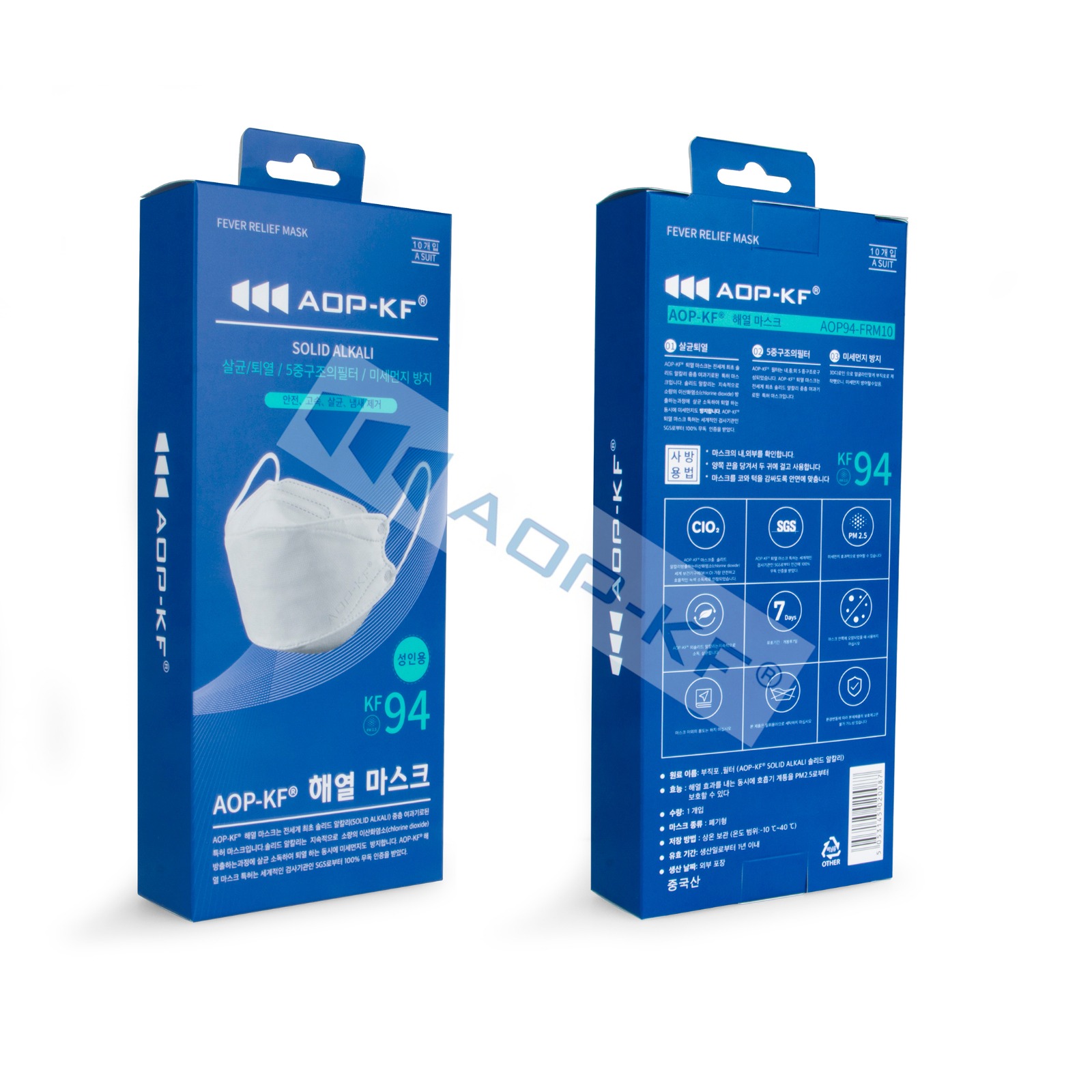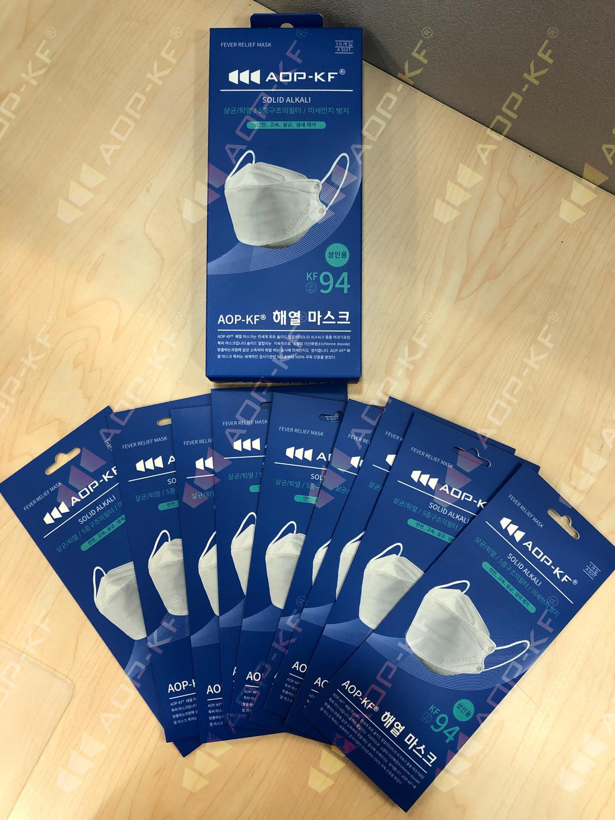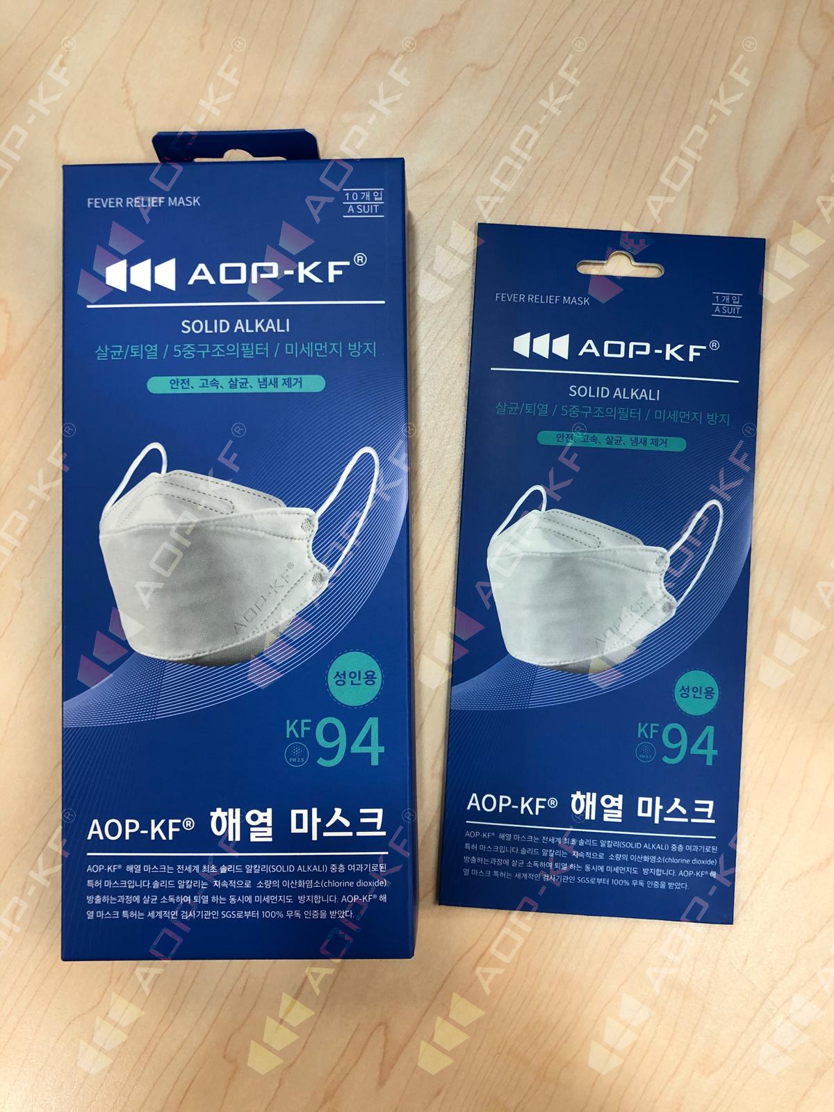 口罩外層和內層均由親膚無紡布製成,中間過濾層是兩層PET棉布融合我們的專利發明:AOP-KF®固體鹼加上99%過濾熔噴布。AOP-KF®口罩不僅可以過濾細菌、病毒及灰塵,還可以殺菌消毒,並且提供周全的保護。